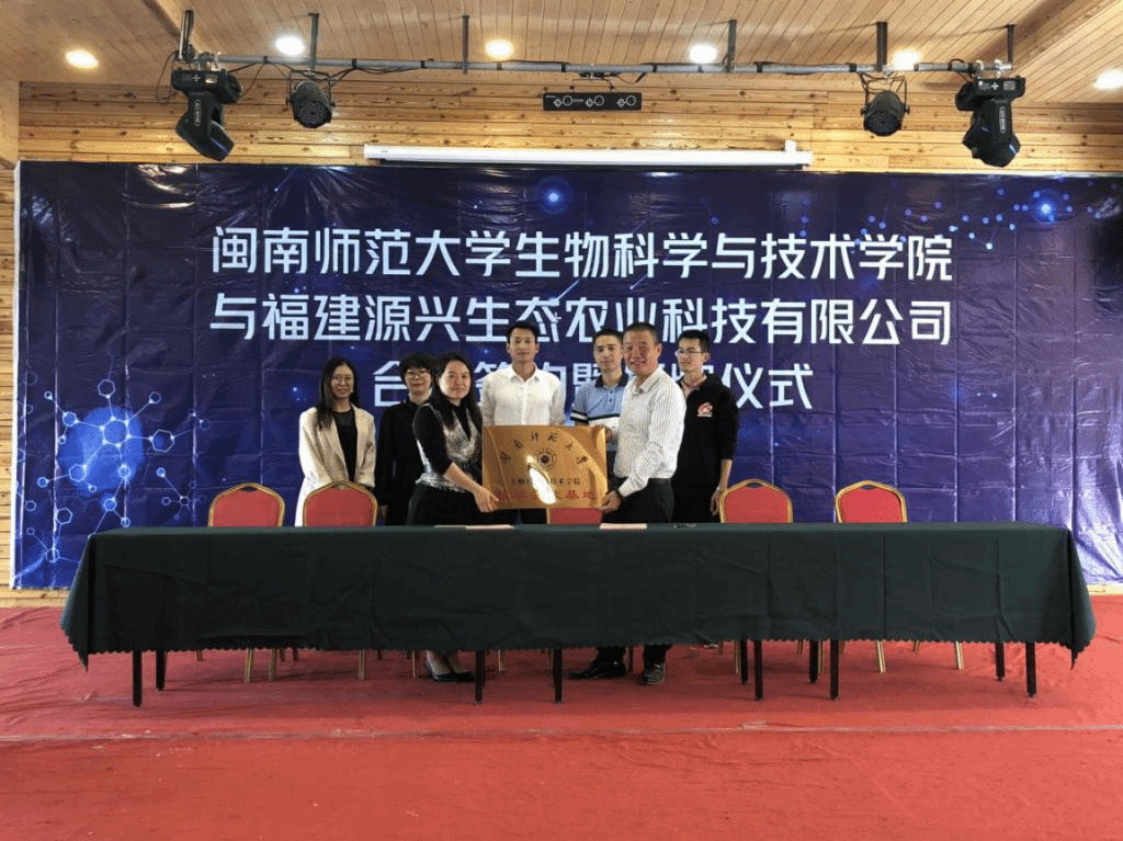 会谈结束后,生科院与源兴生态农业科技有限公司签订了共建实习基地协议并授牌。