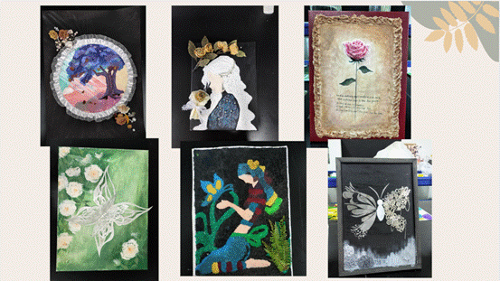 看着制作完的肌理画,同学们纷纷表示感到成就感满满,表示今后也会愿意多尝试其他不同的手工。
