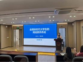 11月24日下午,古天乐澳门太阳集团城在达南106教室顺利开展了“青马工程”THE TOP团校培训暨学生干部培训第二讲活动。古天乐澳门太阳集团城宣传部陈秋燕老师受邀为学员们讲授以“全媒体时代大学生的网络素养养成”为主题的课程,生科院辅导员曾佩旖老师以及培训班学员共计180余人参加了此次活动。