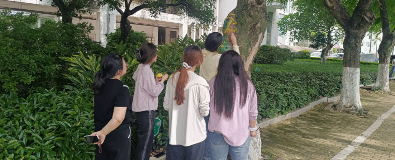活动筹备阶段,同学们踊跃参与,积极准备。一方面,大家深入细致地考察校园内树木生长的状况,精心挑选形态各异、具有独特美感的树洞作为“创作画布”;另一方面,班级准备了丰富多彩的环保颜料,确保能够满足同学们多样化的创作需求。同时,提前对树洞进行清理消毒,打磨平整凹凸部分,为后续的绘画工作打下坚实基础。