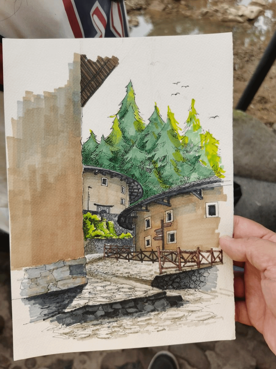 写生实习期间,漳州城市职业学院王志固教授受邀到现场指导学生,同学们也在每天的练习中不断的提高自己对环境的描绘能力,提升对色彩的综合运用,领悟土楼作为世界文化遗产的自然之美和人文精神。