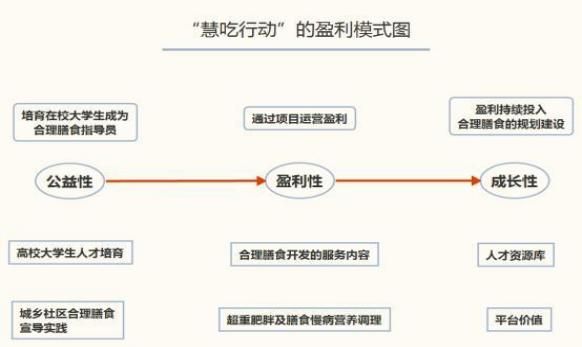 团队相信先指导一批认可及践行合理膳食的高校大学生,让他们 自身在不断践行合理膳食的过程中,能够从个人出发影响到家人、朋 友、同校同龄大学生,有效持续地在高校激发合理膳食宣导实践的群 体集聚效应和扩大覆盖面,并快速地培育一批合理膳食指导员高校大 学生人才队伍,成为走进乡村地区的推动合理膳食宣导实践的主力军队伍,形成青年长期发展的机制和可持续发展的产业模式,并为健康扶贫、助农富农、乡村振兴贡献一份新的力量和活力。