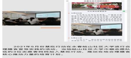 针对大学生开展“粒粒旺乡 ”开发的减重行动、高校食堂合理膳食搭配挑战赛、大学宿舍手动简易制作的营养餐食教学、城乡社区合理膳食宣导实践志愿行动,培育大学生的合理膳食健康意识素养及实践能力,让大学生参与到合理膳食宣导实践中来,进一步带动更多群体加入到合理膳食的实践当中。
