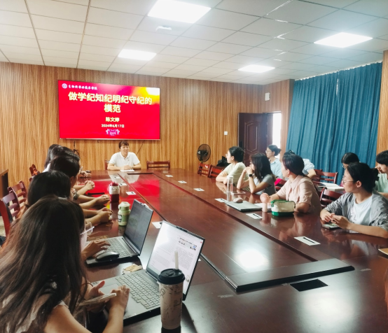 为深入学习贯彻落实习近平总书记关于加强党的纪律建设的重要论述,推动党纪教育走深走实,教育引导学生党员将遵规守纪刻印在心,铭记于行。2024年6月17日下午,学院党委副书记陈文婷为学生第五党支部及研究生党支部讲授题为《做学纪知纪明纪守纪的模范》的专题党课。