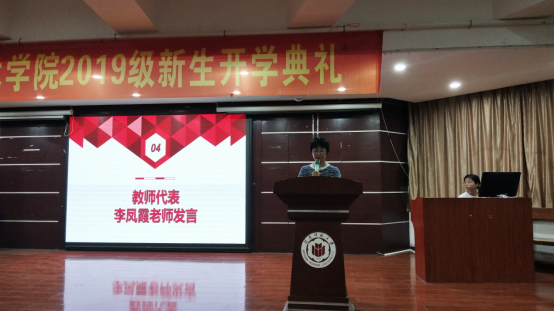 而后,教师代表李凤霞老师向大家分享了关于学习和生活的体验,提出“树立新目标”“严于律己,宽以待人”“不因虚度年华而悔恨”等几点建议。勉励新同学珍惜当前的机遇,用知识改变命运。