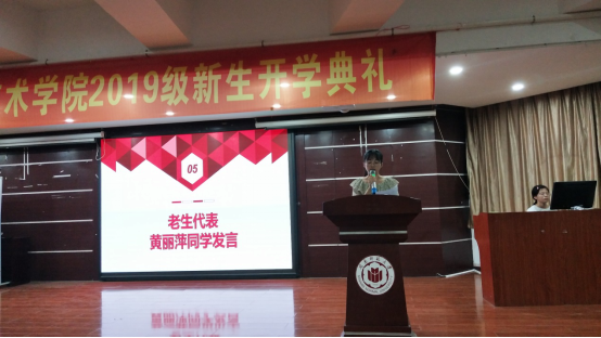 17级生物科学(师范)专业在校生代表黄丽萍同学上台发言。作为国家奖学金的获奖者,她向新生分享了自己在学业、生活、第二课堂活动的心得,并对新生的到来表示欢迎和祝福。紧接着,19级新生代表食品科学与工程专业的张璐同学表达了对大学生活的憧憬和对未来的希冀。