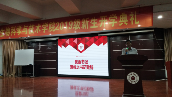 典礼最后,学院党委书记蒲俊之书记致辞,围绕习近平总书记给全国涉农高校的书记校长和专家代表回信,对提出希望,要以“立德树人为根本,以强农兴农为己任”,为生科院的发展助力。蒲书记还特别强调要提高安全警惕性,增强防范意识。并祝愿新同学们能开心平安地度过大学四年的美好时光。