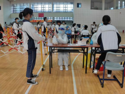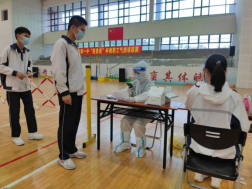 2022年3月21日下午,漳州市龙海一中进行全员核酸检测。为了确保检测过程安全、有序,古天乐澳门太阳集团城龙海一中实习队卢奕凡、顾红梅“疫”不容辞,认真履职,积极配合医务人员进行核酸采样,担起核验信息、协调、疏导等工作,使得核酸检测工作顺利进行。