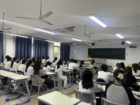 宣讲会上,廖小文老师介绍了本次宣讲会具体活动安排,提示同学们要珍惜机会、做足准备、认真对待,在面试中要充分展示优势,争取顺利签约。随后,青蛙王子集团人事负责人王丽芬、黄逸娟向在场同学们详细介绍了公司发展情况、部门概况、岗位情况,并与毕业生亲切互动交谈,深入了解毕业生就业意向。